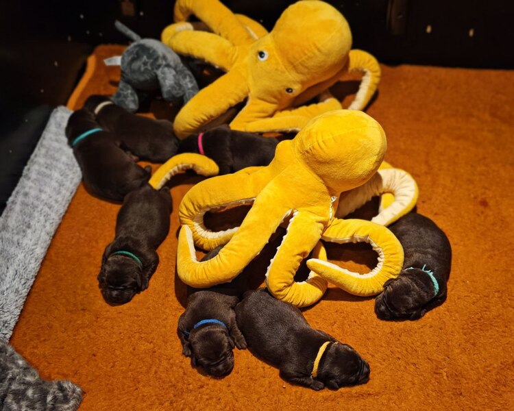 Unseren nächsten Wurf erwarten wir um den 24.04.2024. Wir erwarten Welpen in den Farben braun, schwarz, blond und Foxred.